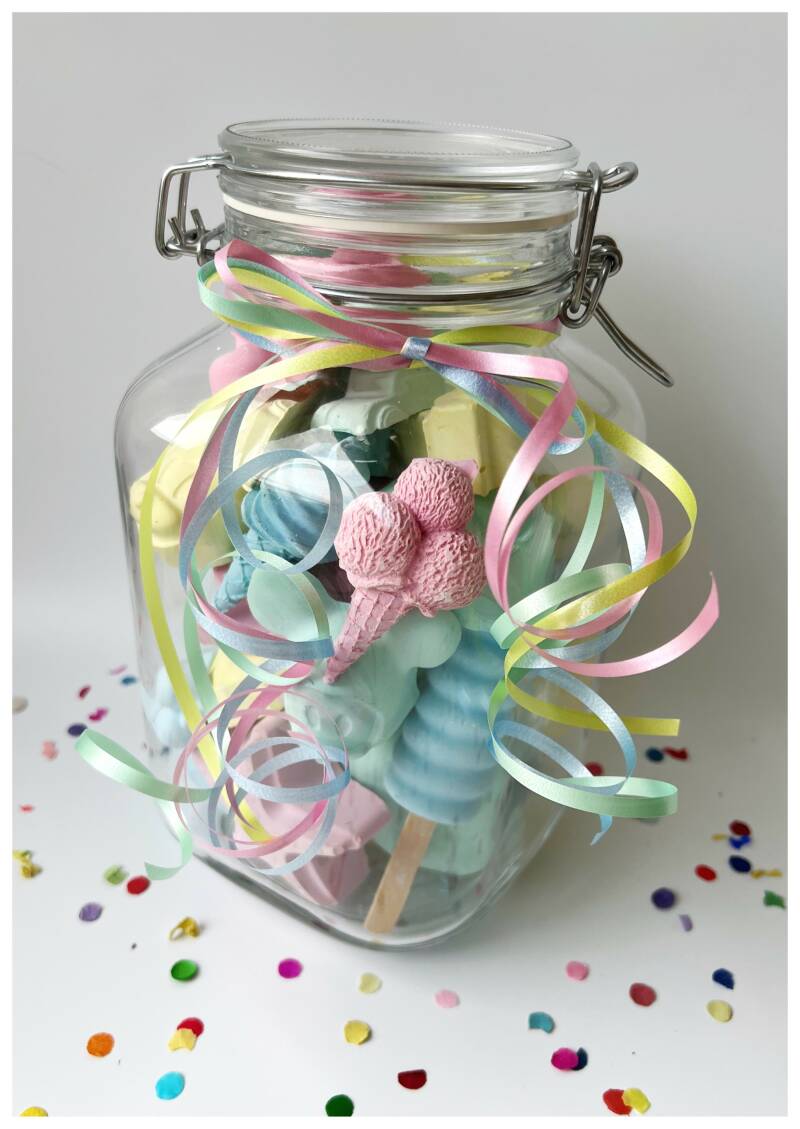 De feestpot wordt gevuld met diverse kleuren en vormen stoepkrijt