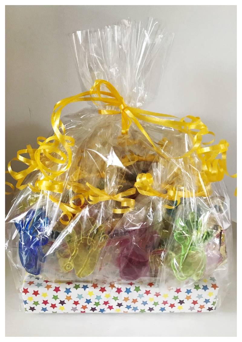 Elke traktatie wordt netjes verpakt in cellofaan.